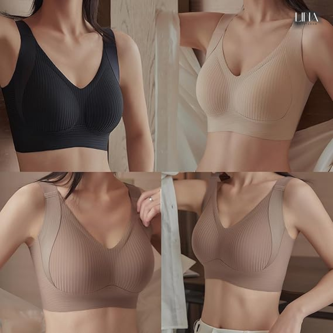 Con sus tirantes ajustables y diseño sin costuras, este sujetador se adapta perfectamente a tu figura, eliminando la incomodidad de los sujetadores tradicionales. Disfruta de un ajuste personalizado que realza tu forma natural.