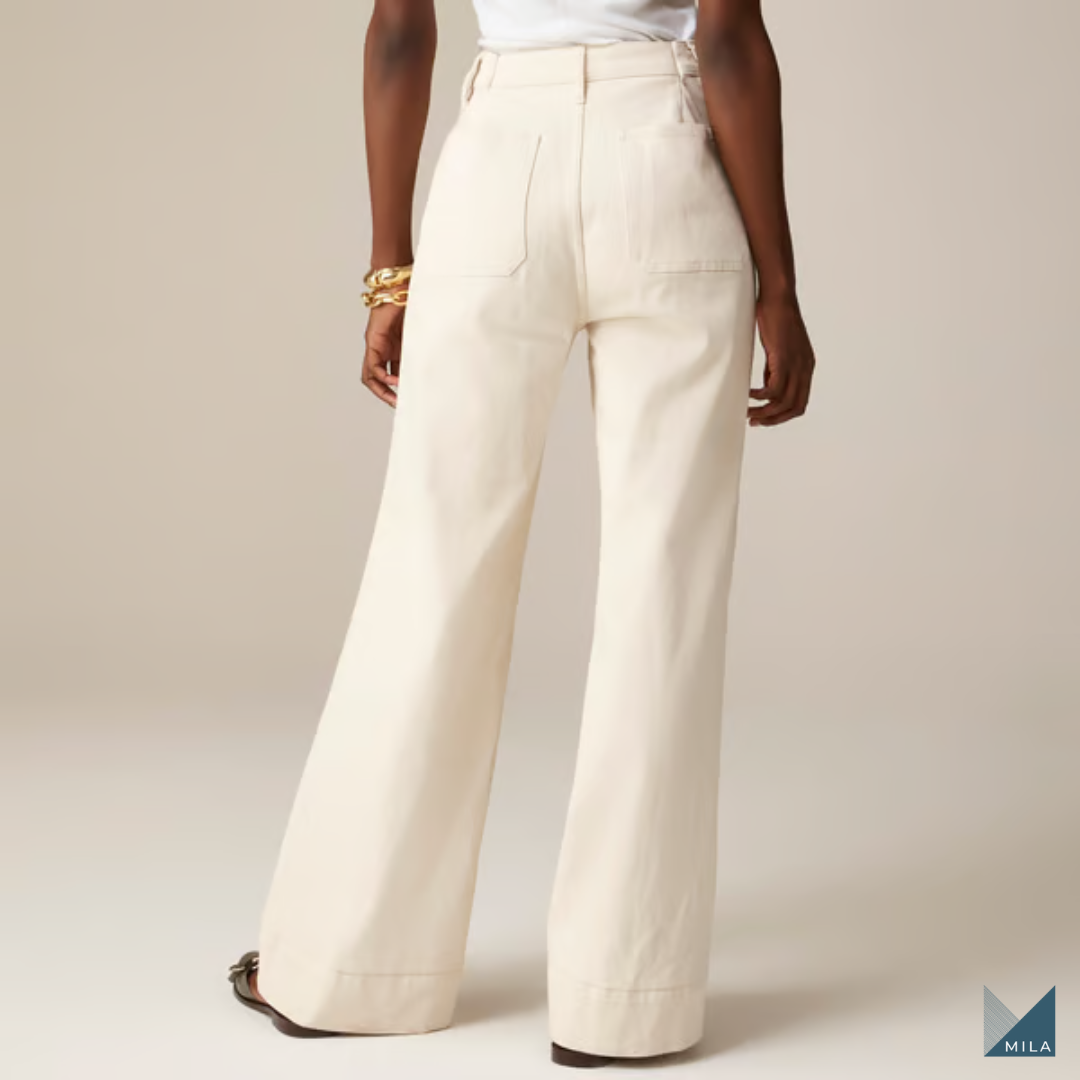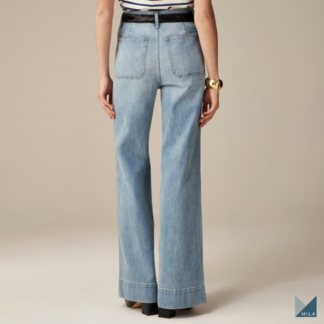 Con su diseño de pierna ancha, estos jeans no solo ofrecen un look moderno, sino que también realzan tu figura, haciendo que te sientas segura y a la moda.